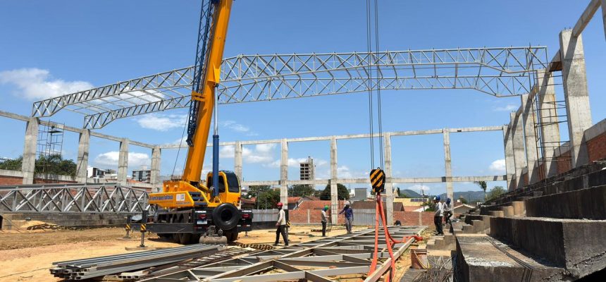Obra do novo Ginásio avança e entra na fase de instalação da cobertura em Braço do Norte